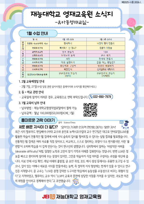 2026학년도 유아동영재교실 1월 11호 소식지_초등,주말유아