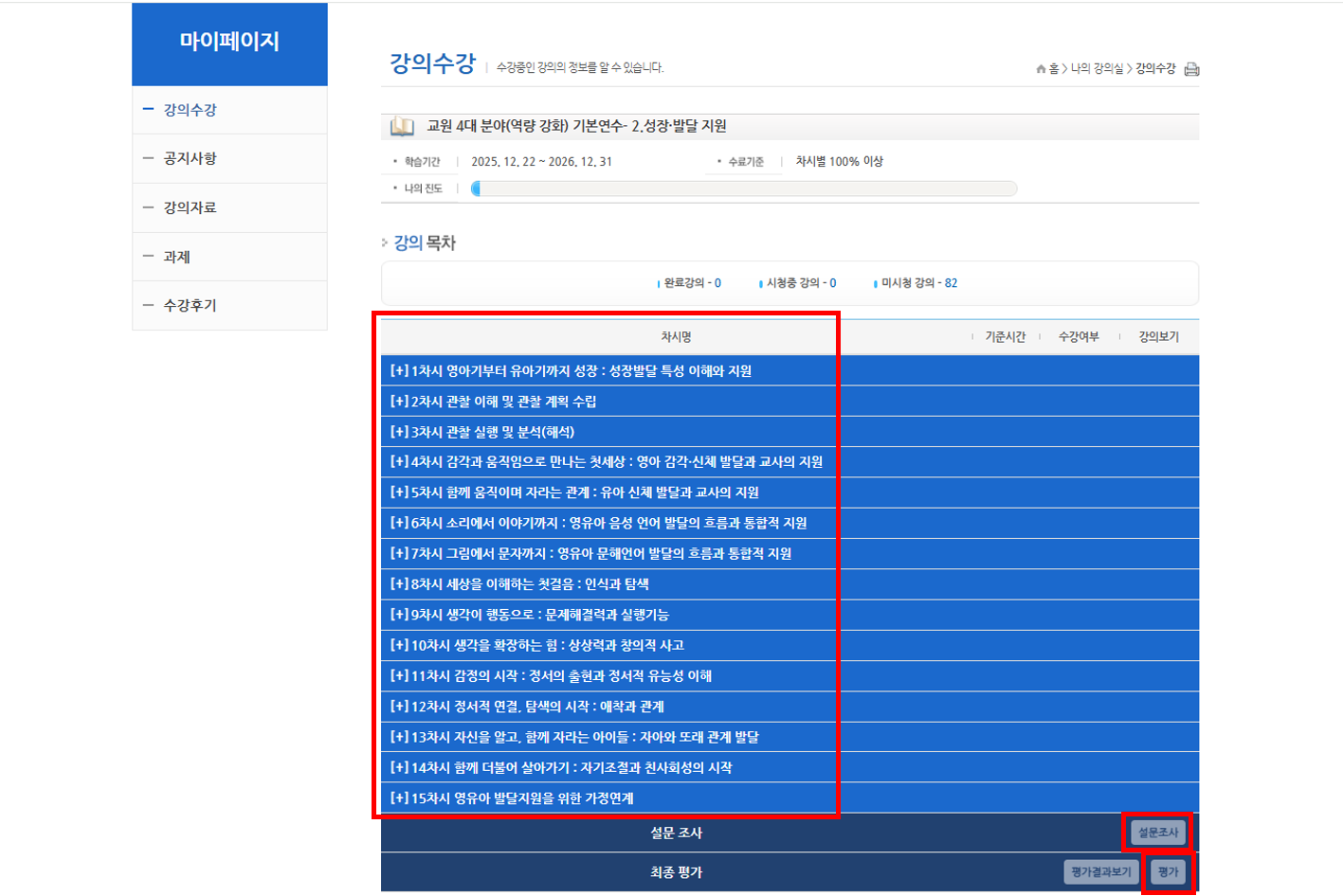 7. 차시별 교육 수강 및 설문조사, 최종 평가까지 완료하기