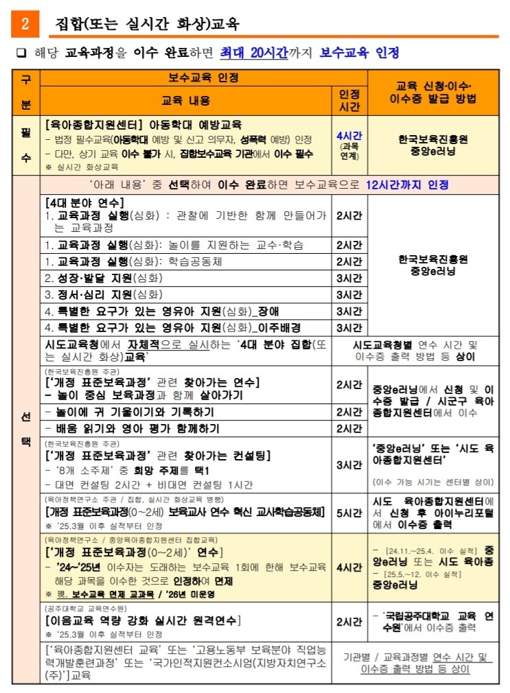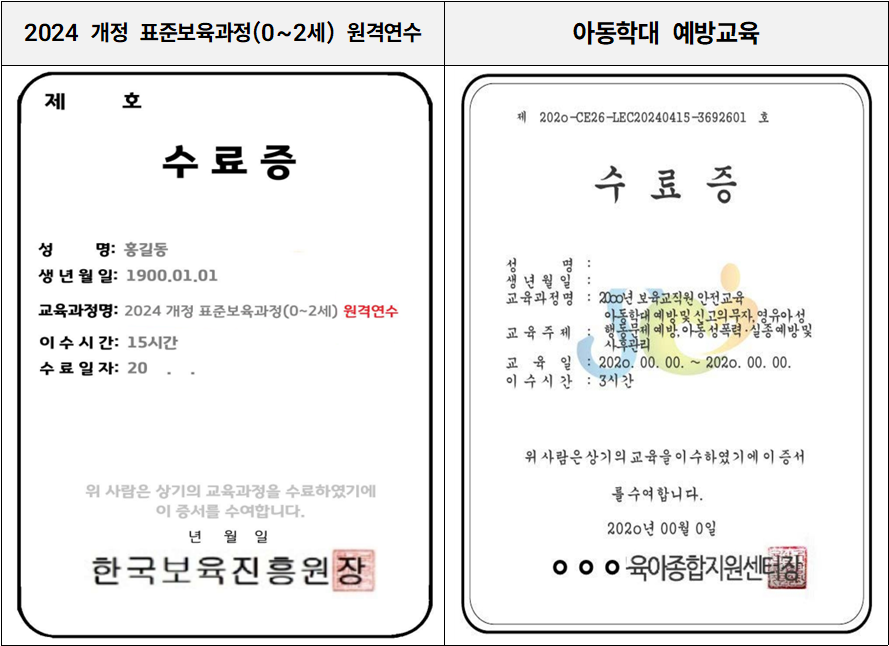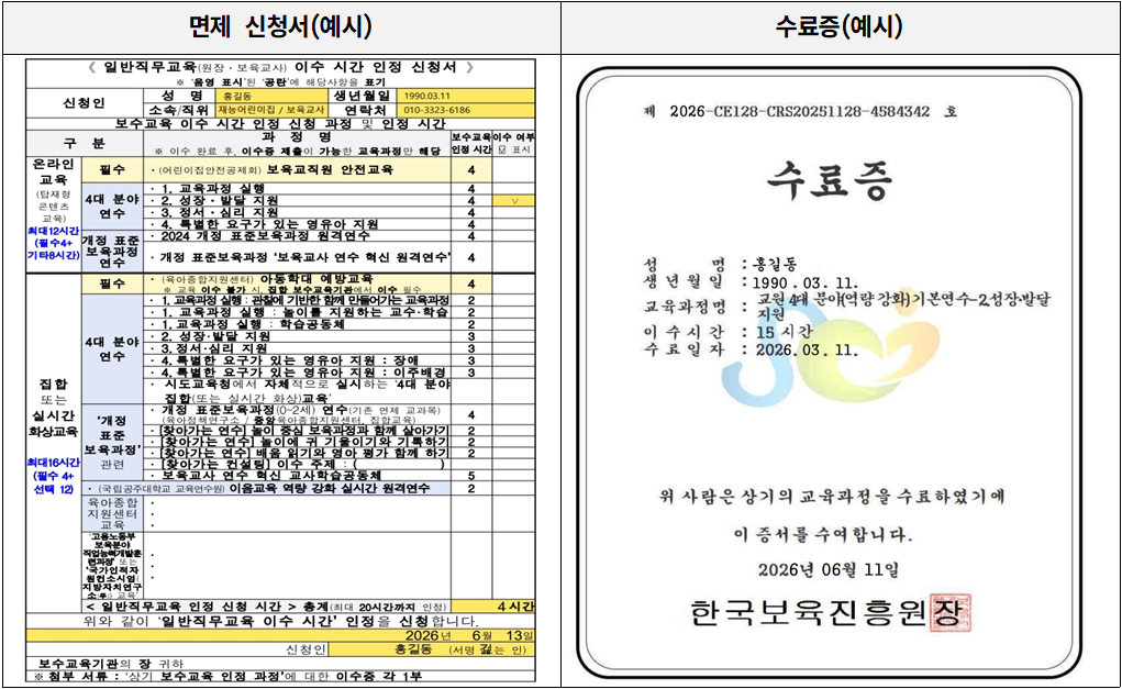 - 모든 수료증은 '보수교육 면제 전날'까지 제출해야 인정