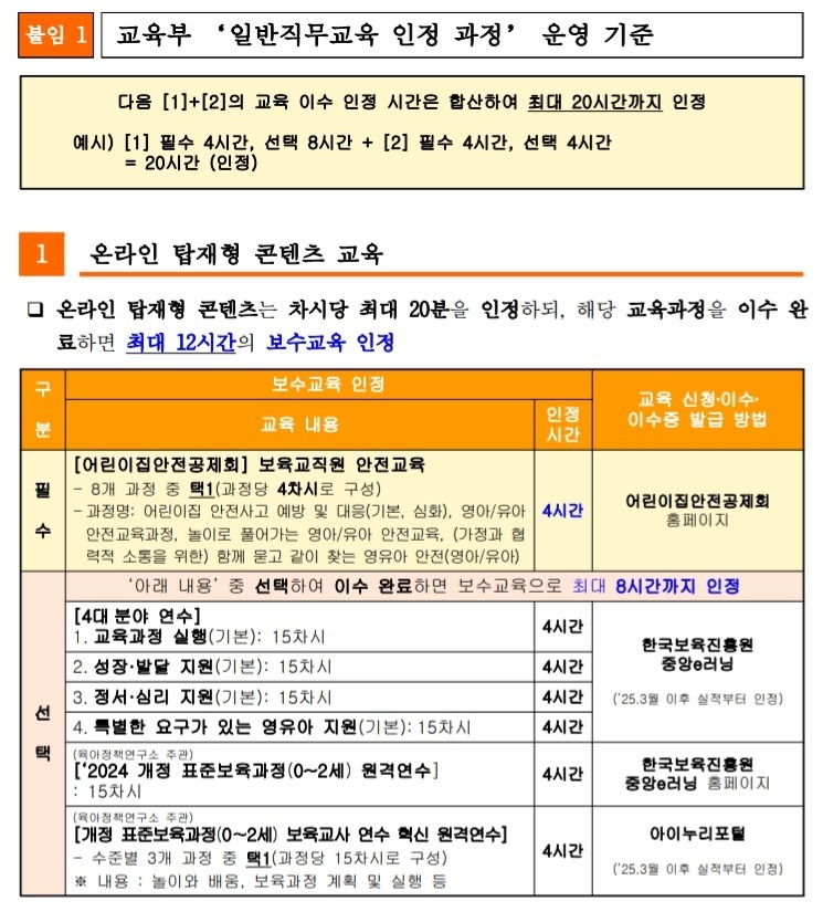 - 교육부에서 변경한 '일반직무교육 인정 과정' 운영 기준