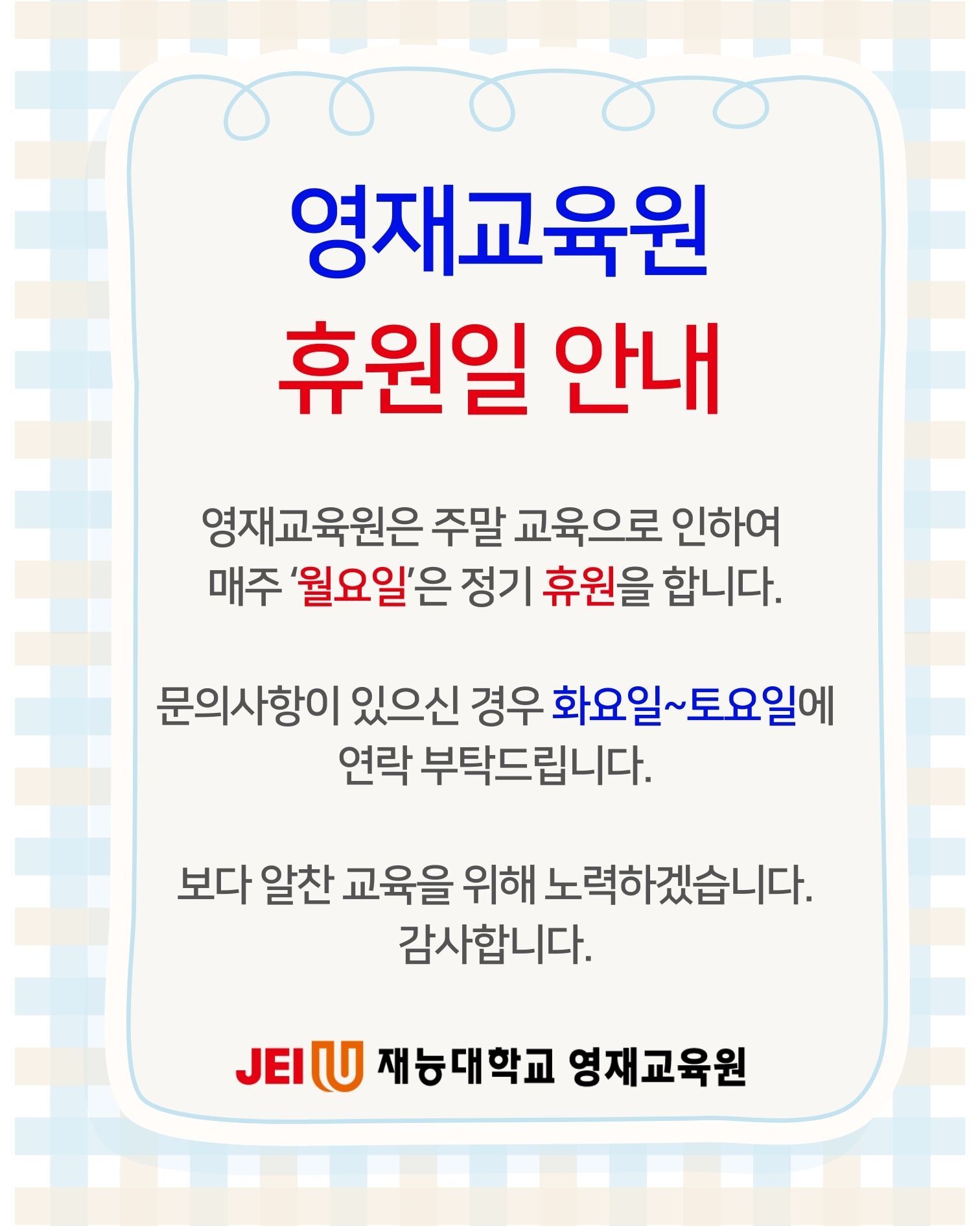 [공지] 영재교육원 휴원일(매주 수요일) 안내